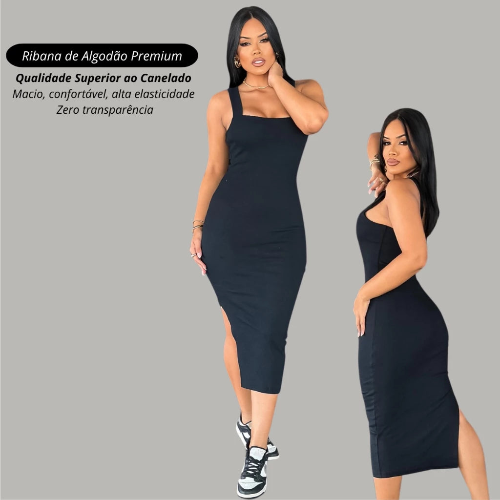 Vestido longo canelado premium com fenda lateral casual basico tubinho vários tamanhos